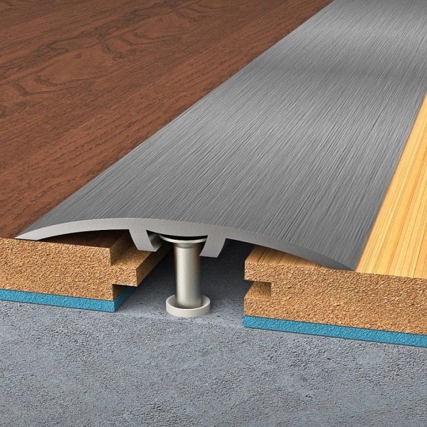 Přechodný profil hmoždinkový určený k zakrytí dilatační spáry mezi jednotlivými podlahami (dřevěné a laminá..